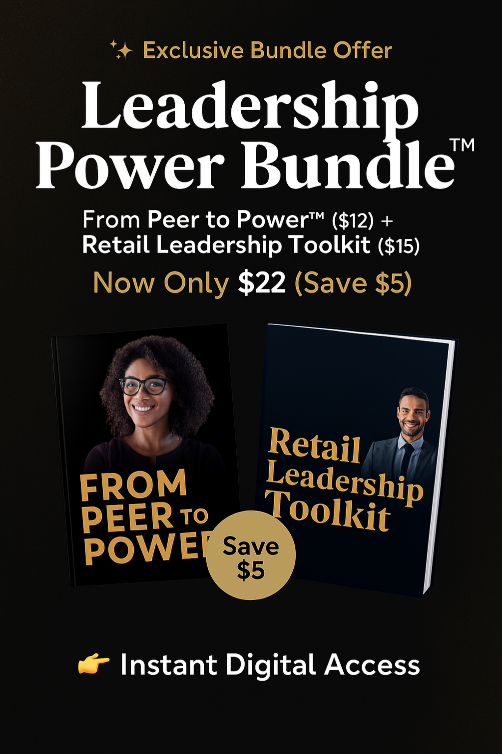 ✨ Leadership Power Bundle™ Get both of Aquiliea’s best-selling leadership tools in one discounted bundle. What’s Included: 📘 From Peer to Power™ ($12 value) Step-by-step guide to leading with confidence when you were just one of the team. 🗂️ Retail Leadership Toolkit ($15 value) Complete set of checklists, coaching scripts, and templates for smooth daily operations. Why Bundle? ✅ Save $5 when you buy together ✅ Instant digital access — start today ✅ Perfect for new managers, supervisors, and team leads Bundle Price: Only $22 (Save $5!) 👉 Lead with confidence, clarity, and proven tools — all in one package.